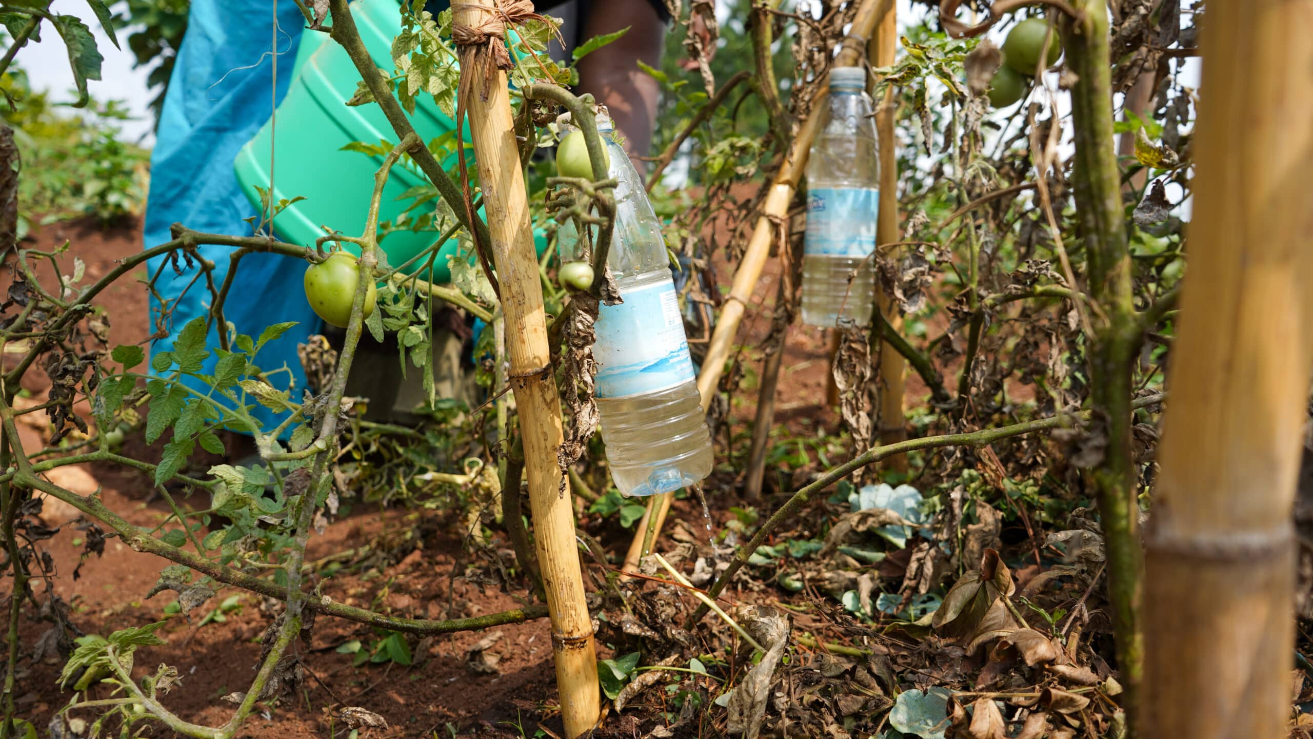 They learned about preparing organic compost manure, received better quality seeds and tools, and got first-hand knowledge of various modern farming techniques. "We would hardly grow any vegetables. But during the training, I learned how important they are for my children's health. With the new seeds I received, I expanded my garden to provide my children with good nutrition," Sarah shares, "I learned new techniques such as planting in lines, early weeding, and applying liquid manure every two weeks," she adds. She also learned climate-resilient techniques that helped reduce water used for her vegetable garden. Sarah collected small, used plastic bottles filled with water and hung them over the soil next to the plants to reduce water usage by preventing rapid percolation and evaporation.